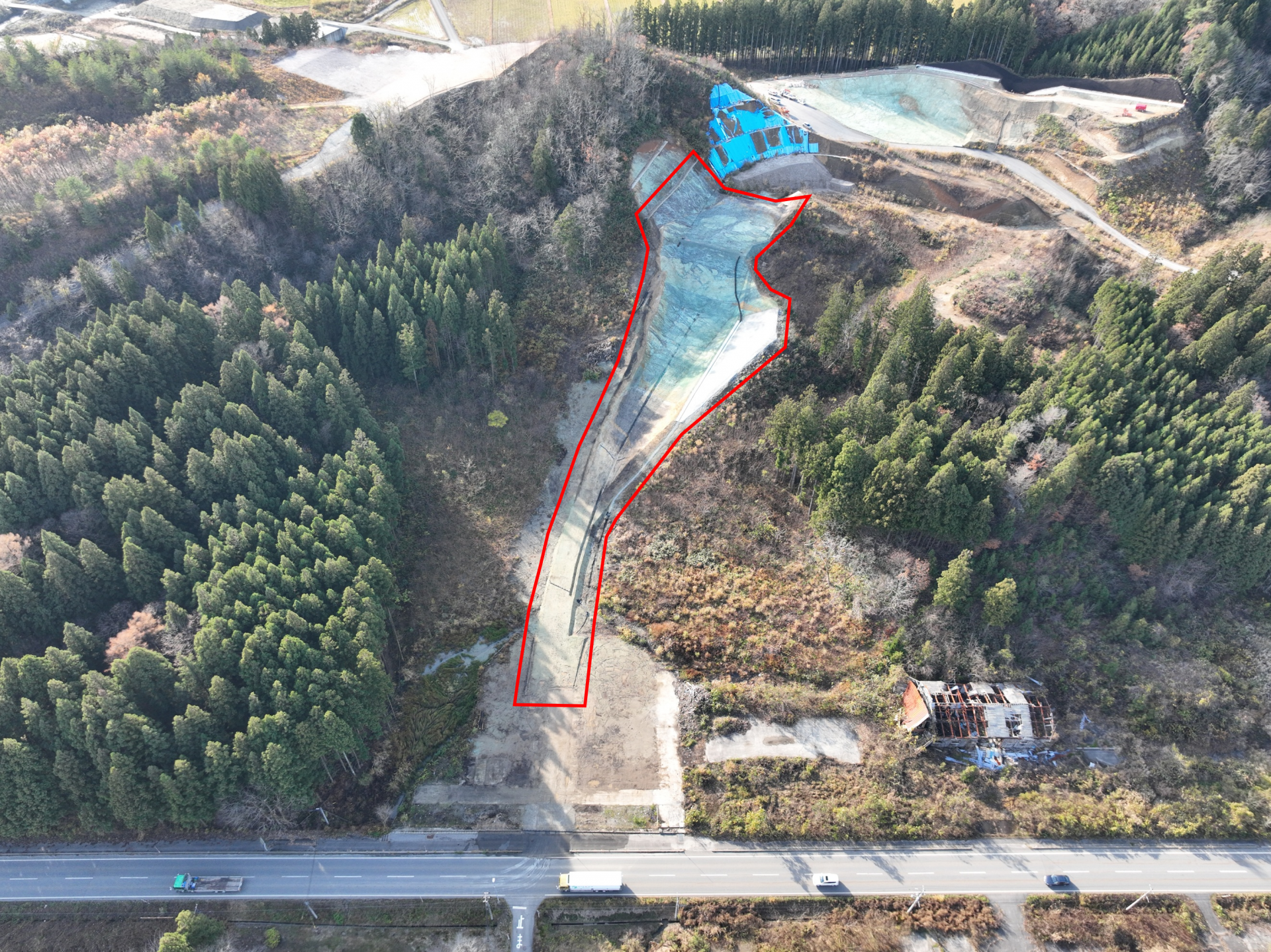 本工事は朝日温海道路事業の内である、大須戸IC計画地においてパイロッド道路(工事用道路)の地山掘削、土砂運搬を行う工事でした。
